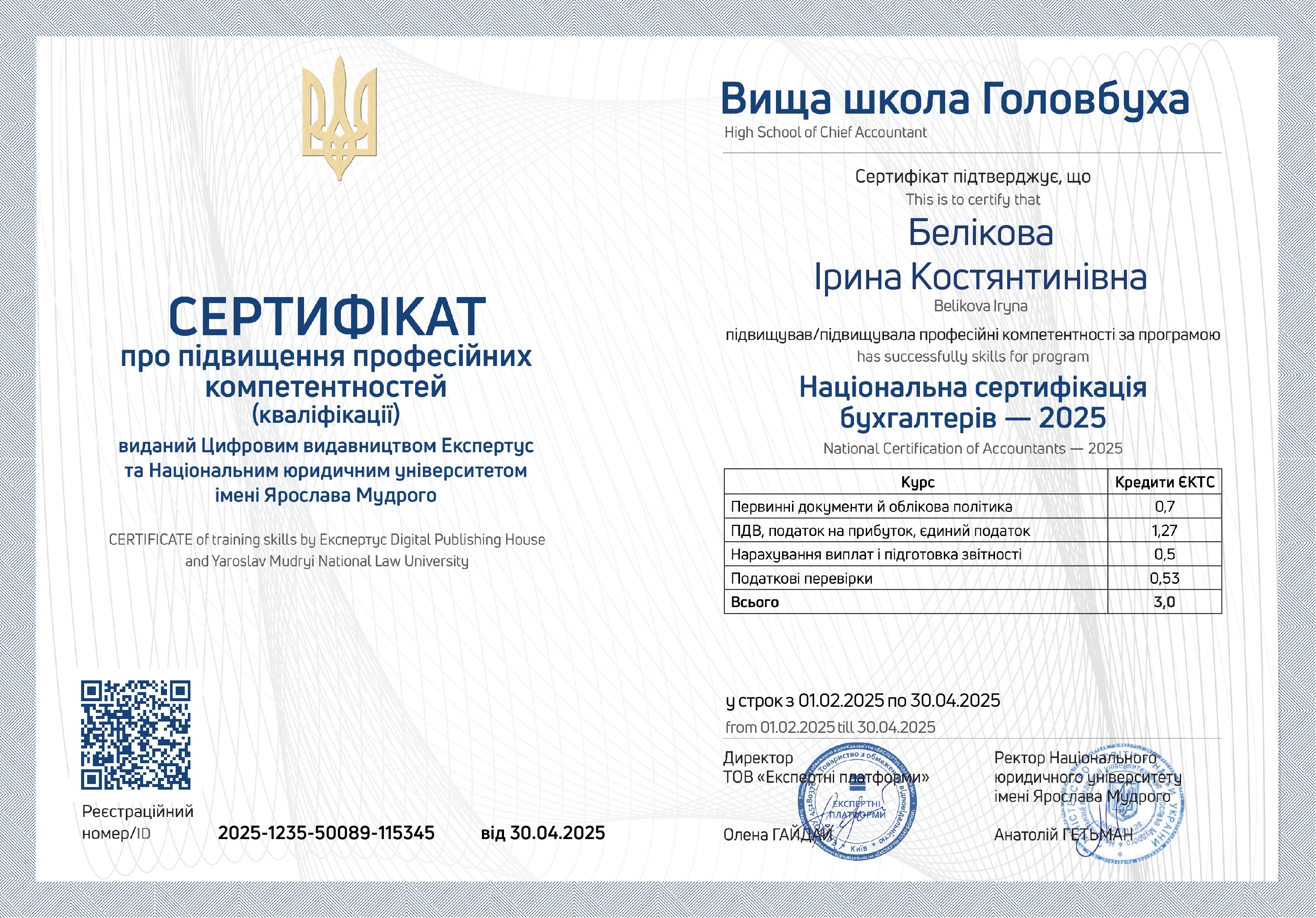 Реєстраційний номер/ID 2025-1235-50089-115345 від 30.04.2025