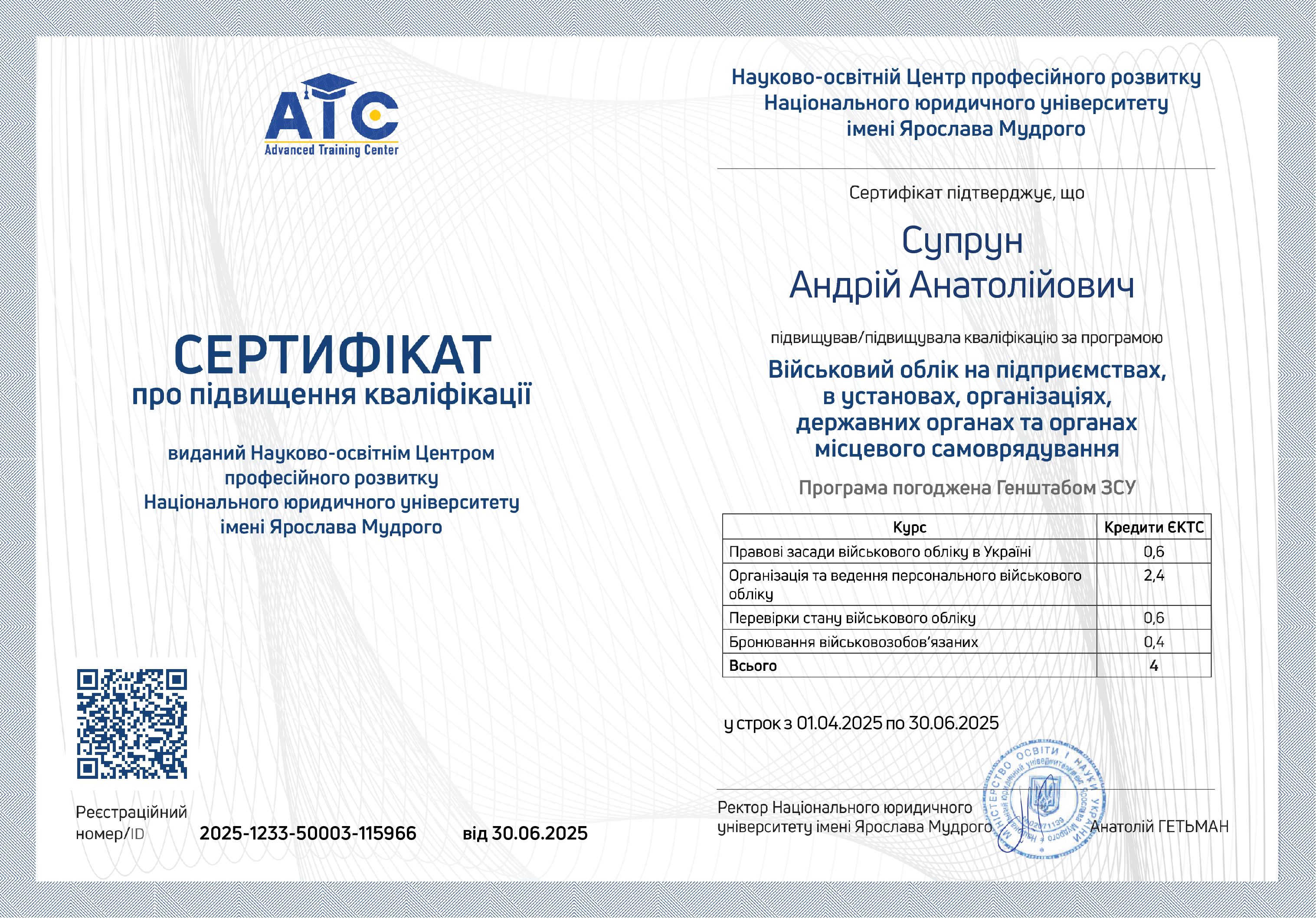 Реєстраційний номер/ID 2025-1233-50003-115966 від 30.06.2025