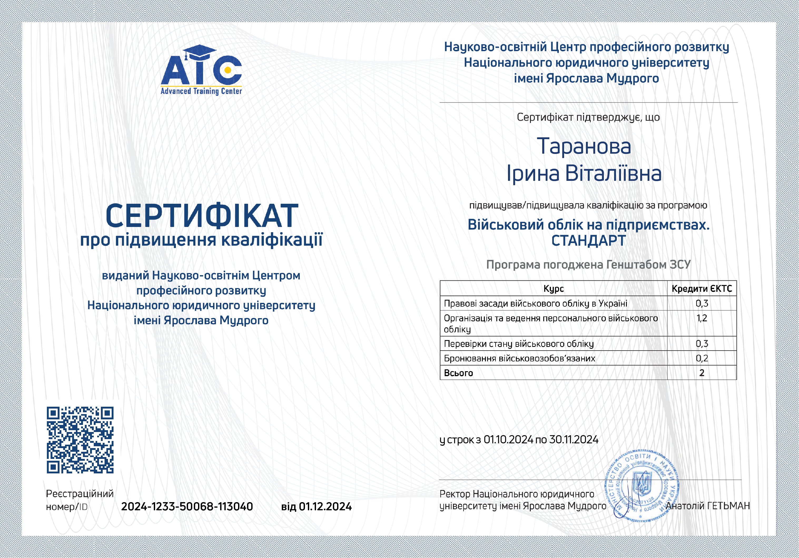 Реєстраційний номер/ID 2024-1233-50068-113040 від 30.11.2024