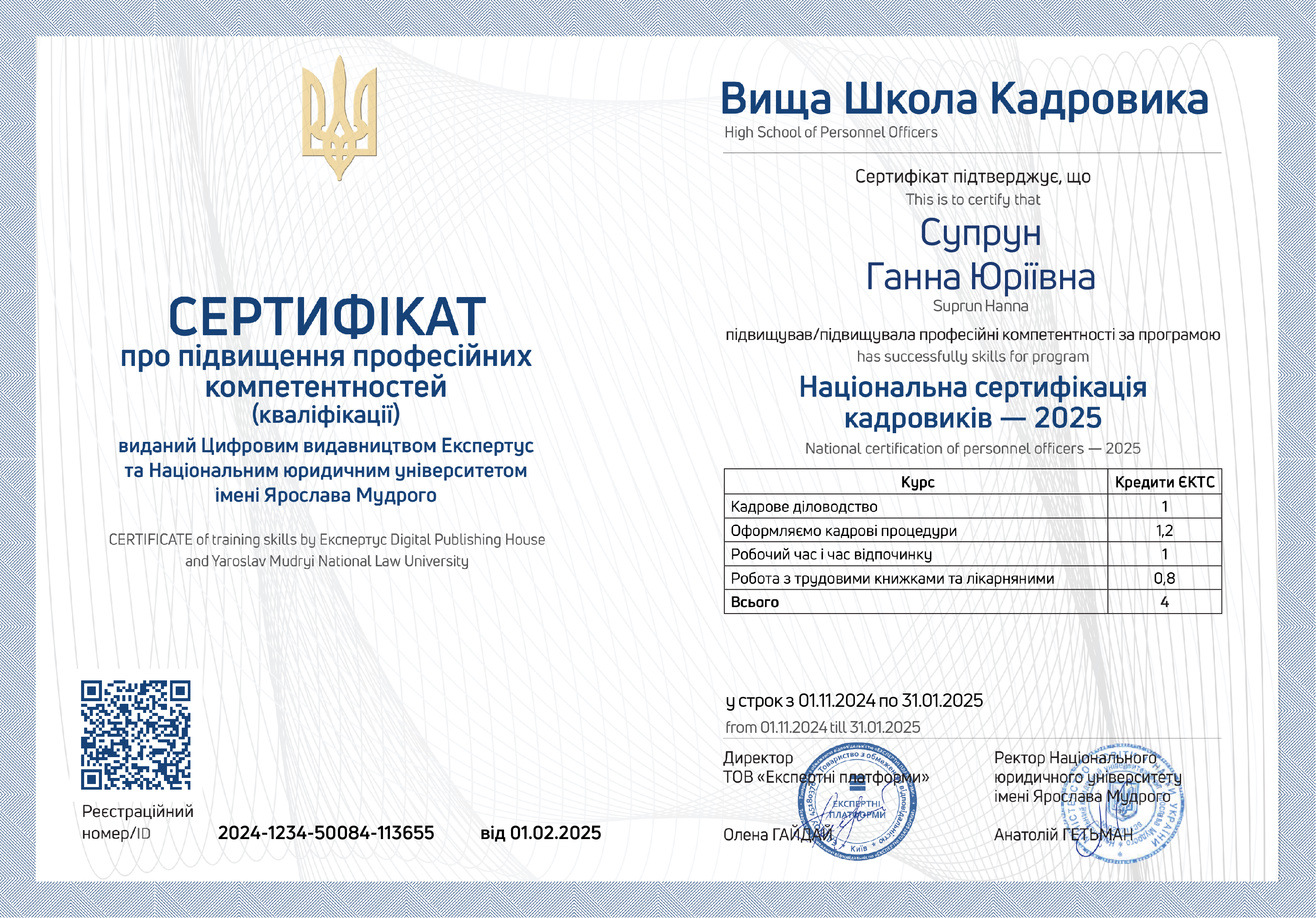 підвищував(-ла) кваліфікацію за програмою Національна сертифікація кадровиків — 2025