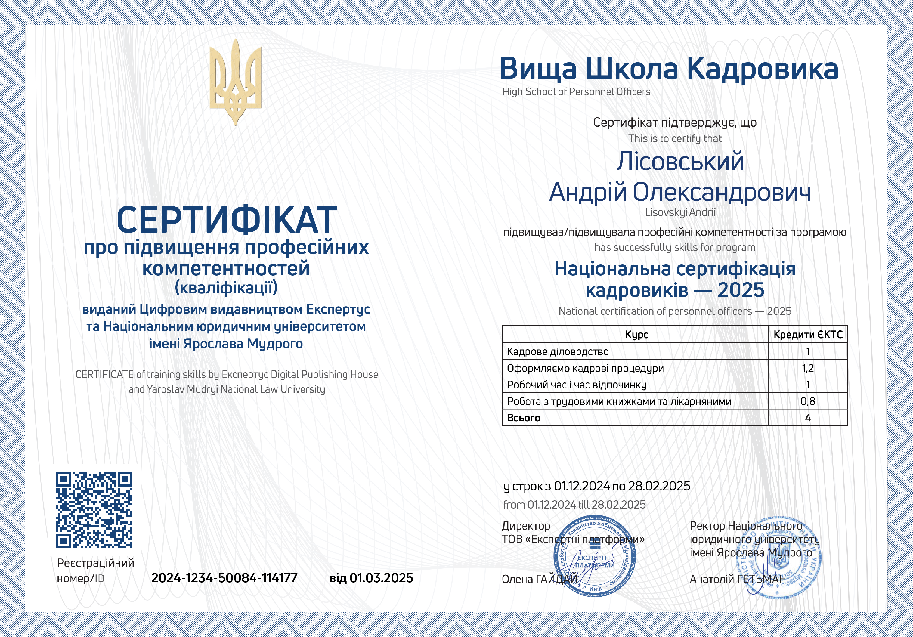підвищував(-ла) кваліфікацію за програмою Національна сертифікація кадровиків — 2025